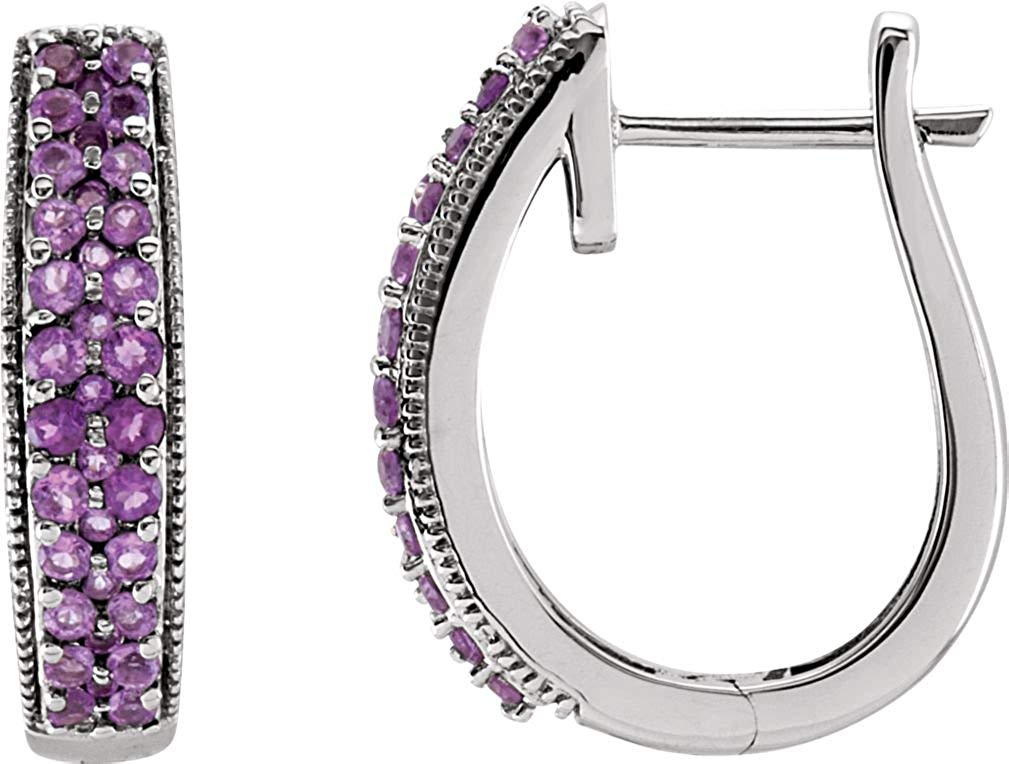 - Seventy Hand-Set Amethysts are Framed with a Milgrain Border; Hoop Earrings are Crafted in Polished 14k White Gold