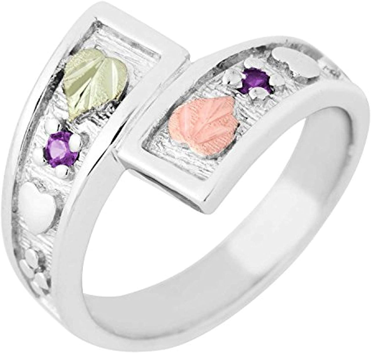 February Birthstone Created Soude Amethyst Bypass Ring, Sterling Silver, 12k Green and Rose Gold Black Hills Silver Motif, Size 9.5