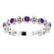 - Alternating Round Genuine Amethyst and Quatrefoil Beaded Flower Link Forming High Polished Ring; Crafted in 14k White gold