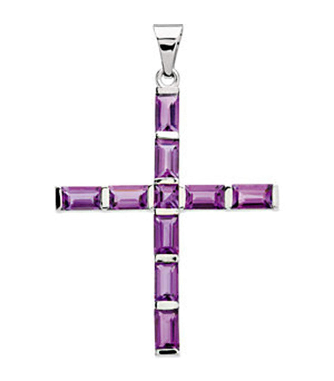 This sparkling cross pendant is crafted of gleaming 14k white gold for a striking contrast against the rich purple amethysts. Whether you wear this cross to show your faith or as an eye-catching piece of jewelry, you're sure to receive compliments. And if you're looking for a gift to celebrate a February birthday, a First Communion, or just because, it's ideal for that, too.