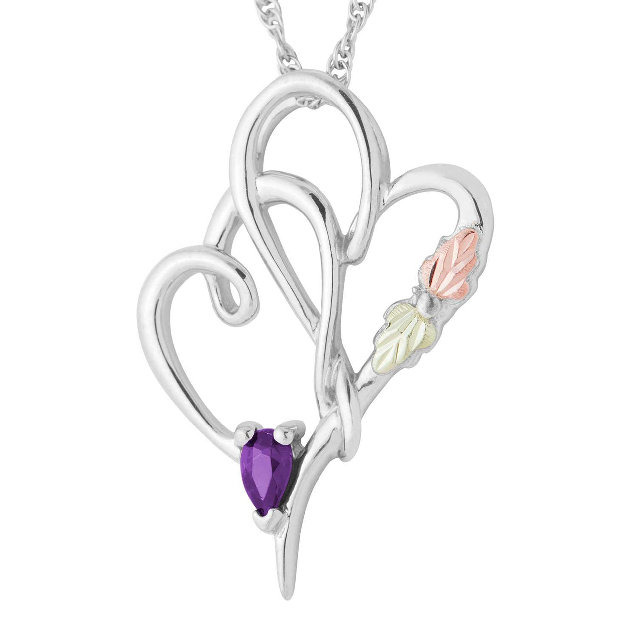 Petite Pear Amethyst with Dual Heart Pendant Necklace, Sterling Silver, 12k Green and Rose Gold Black Hills Silver Motif, 18"