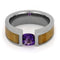 - Tension Set Antique Square Amethyst on Center Secure by Bamboo Wood Inlay on a Hypoallergenic Titanium Sleeve, Comfort-Fit, Flat Profile