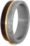 - HAND-CRAFTED Band with Non-Jointed Amboyna Burl Wood and Gibeon Meteorite Overlays Separated by a 14k Yellow Gold Pinstripe on a Hypoallergenic; Comfort-Fit Matte Titanium Band