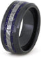 Blue and White Gold Stardust, Gibeon Meteorite 8mm Comfort-Fit Black Ceramic Wedding Band, Size 12