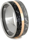 - HAND-CRAFTED Couples Rings: Men's Flat Ring with Flat Edging is 10.00 Millimeters Titanium Polished Sleeve Encircled By Gibeon Meteorite and 14k Rose Gold Pinstripe with Black Stardust Overlay; Women's Domed Profile is 5.50 Millimeters Wide, 14k White Gold Polished Sleeve Encirled By Round Diamond Eternity with Meteorite and 14k White and Rose Gold Pinstripe Overlay; Both are Hypoallergenic Comfort-Fit Titanium Rings
