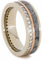 Diamond Eternity, Gibeon Meteorite, 14k Rose and White Gold Ring, Men's Gibeon Meteorite, 14k Rose Gold Stripe, Black Stardust, Titanium Band; His and Hers Wedding Set, M14-F7.5