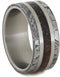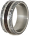 - Comfort-fit, Matte Finished, Hypoallergenic Titanium Sleeve Surrounded by an Gibeon Meteorite Overlay with a Pinstripe of Dinosaur Bone On-Center; Both Gibeon Meteorite Bands are Continuous with no Joints; Flat Profile Band