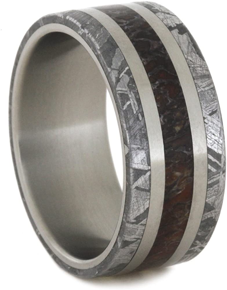 - Comfort-Fit Band is 8.00 Millimeters Wide; Left to Right Measurements are: 2.00 Millimeters Gibeon Meteorite, 1.00 Millimeters Titanium, 2.00 Millimeters Dinosaur Bone, 1.00 Millimeters Titanium, 2.00 Millimeters Gibeon Meteorite