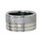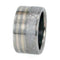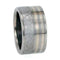 - Comfort-Fit Titanium Sleeve Encircled by a Bright Polished, Hypoallergenic Etched Gibeon Meteorite Inlay with Two 14k White Gold Pinstripe; Flat Profile Band