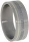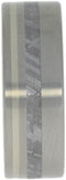 • Comfort-Fit, Matte Finished, Hypoallergenic Titanium Sleeve Surrounded by an Etched Gibeon Meteorite and 14k White Gold Stripe Inlay with a Pinstripe of Titanium with no Joints; Flat Profile Band