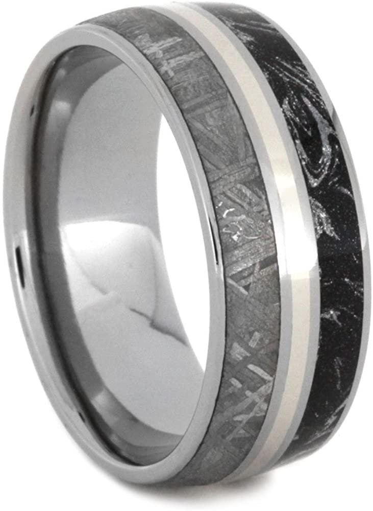 • Comfort-Fit Band is 8.00 Millimeters Wide; Left to Right Measurements are: .50 Millimeters Titanium, 2.50 Millimeters Gibeon Meteorite, .50 Millimeters Titanium, 1.00 Millimeters 14k White Gold, .50 Millimeters Titanium, 2.50 Millimeters Black and White Composite Mokume, .50 Millimeters Titanium
