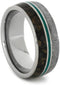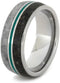Gibeon Meteorite, Dinosaur Bone, Green Enamel Pinstripe 9mm Comfort-Fit Titanium Band, Size 6.25