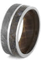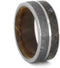 - HAND-MADE, Whiskey Barrel Oak Wood Comfort-Fit Ring Sleeve Encased with Dinosaur Bone, Titanium Pinstripe, Gibeon Meteorite Overlays Edged with Polished Titanium Pipestone Sides