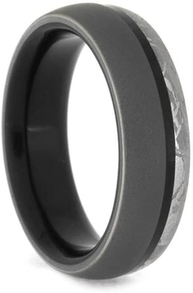 - Stunning Widmanstätten Patterned Gibeon Meteorite, Rich Textured Sandblasted Titanium with a Peek-a-Boo Pinstripe of Ebony Wood; the Round Profile, Comfort-Fit, Hypoallergenic Ring has a Smooth, Delightfully Comfortable Ebony Wood Sleeve
