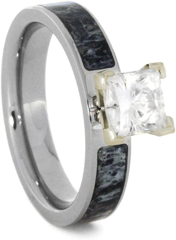 Carbon Fiber, Deer Antler 9mm Comfort-Fit Titanium Ring, Size 4.75