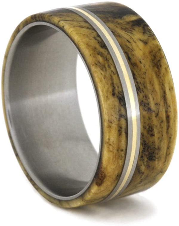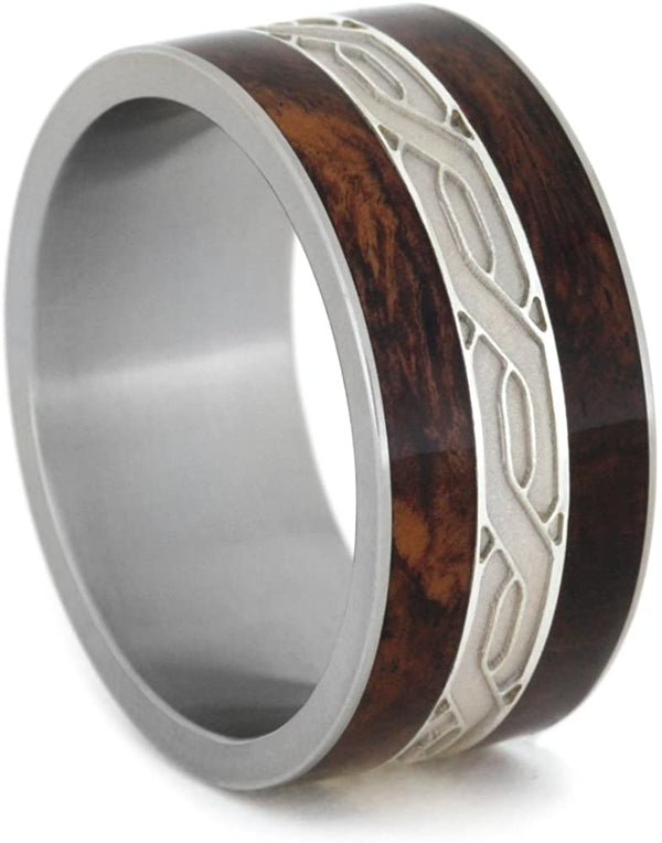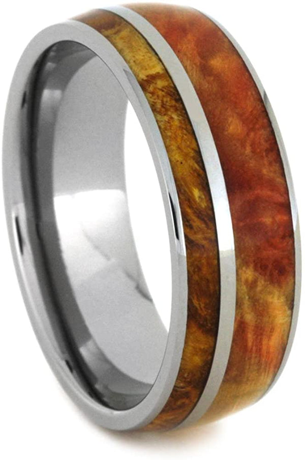 Amboyna Burl Wood 10mm Comfort Fit Titanium Wedding Band, Size 8.25