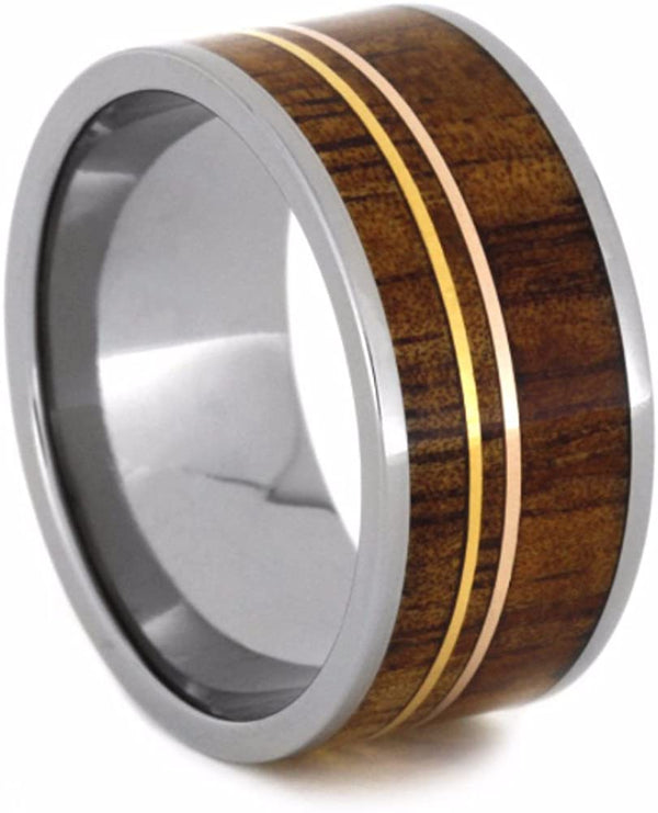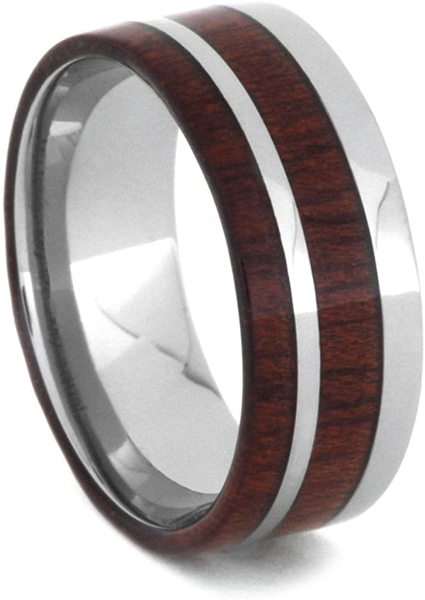 Koa Wood Inlay 8mm Comfort Fit Titanium Wedding Band, Size 11.25