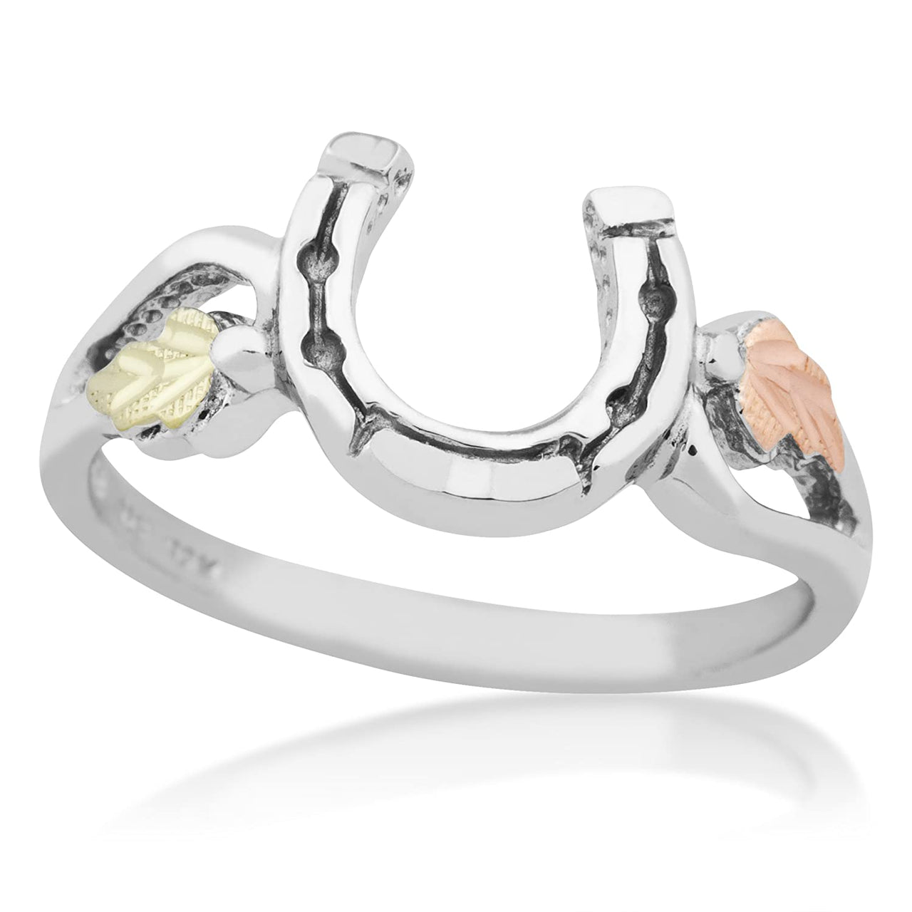 Slightly Antique Horseshoe Ring, Sterling Silver, 12k Green and Rose Gold Black Hills Gold Motif