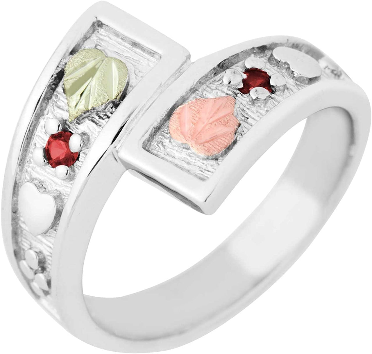 January Birthstone Created Garnet Bypass Ring, Sterling Silver, 12k Green and Rose Gold Black Hills Silver Motif, Size 7.25