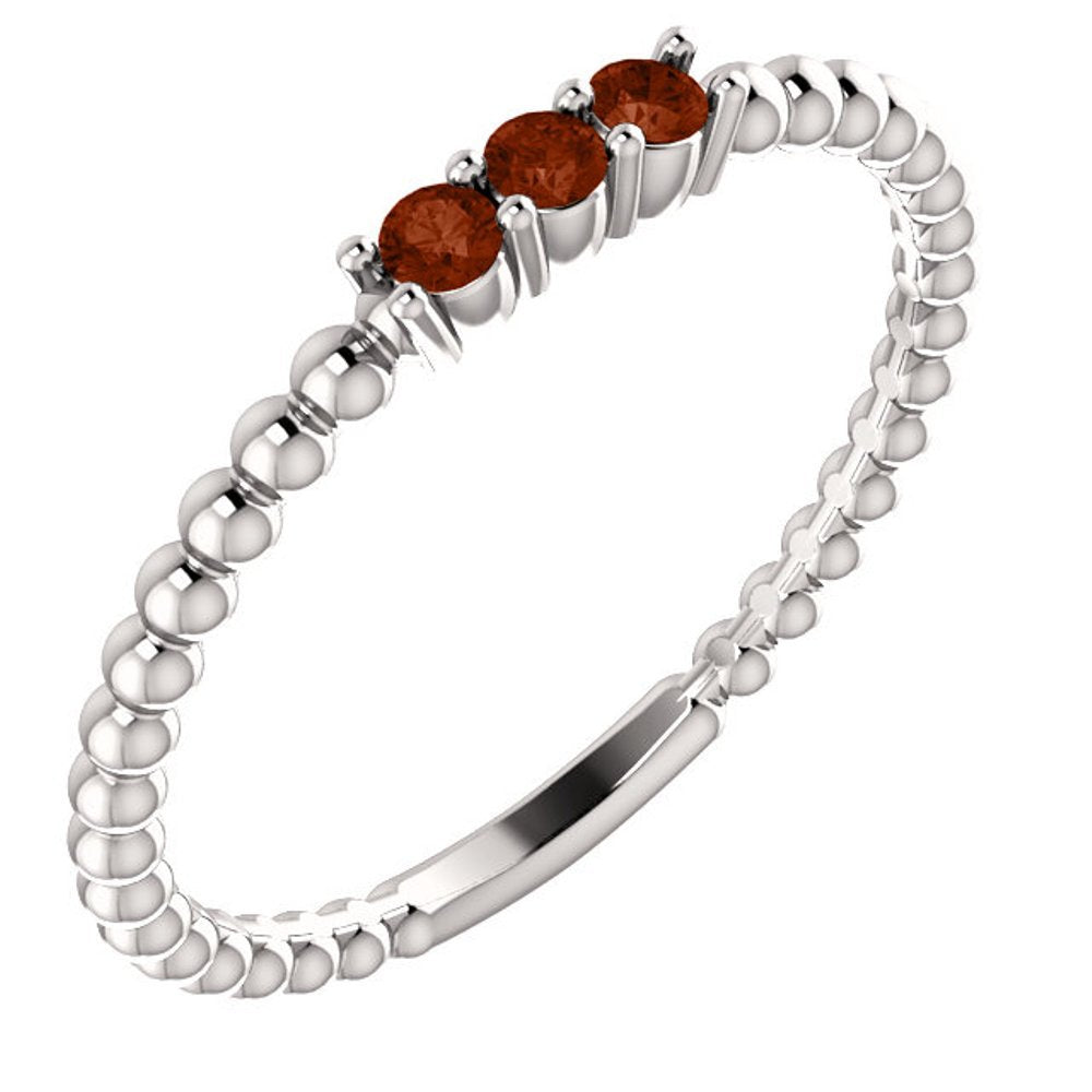Mozambique Garnet Beaded Ring, Rhodium-Plated 14k White Gold, Size 6
