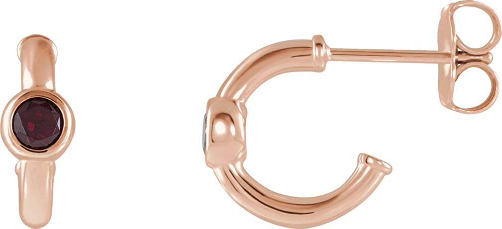 - Round Genuine Mozambique Garnet Secured by Bezel Setting on Center of J Profile with Friction Back; Earrings are Crafted in Polished 14k Rose Gold