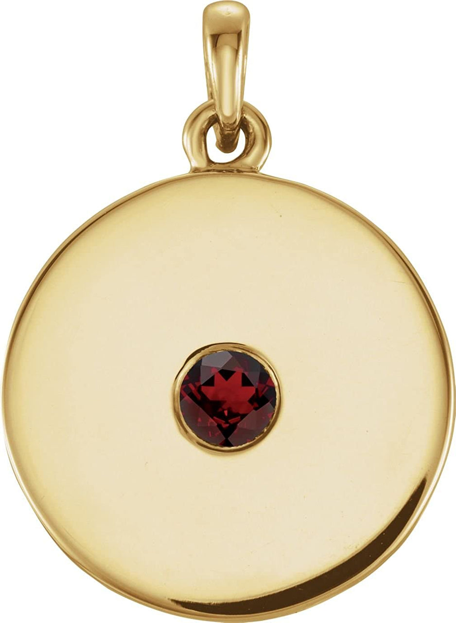 Round Garnet Disc Pendant, 14k Yellow Gold