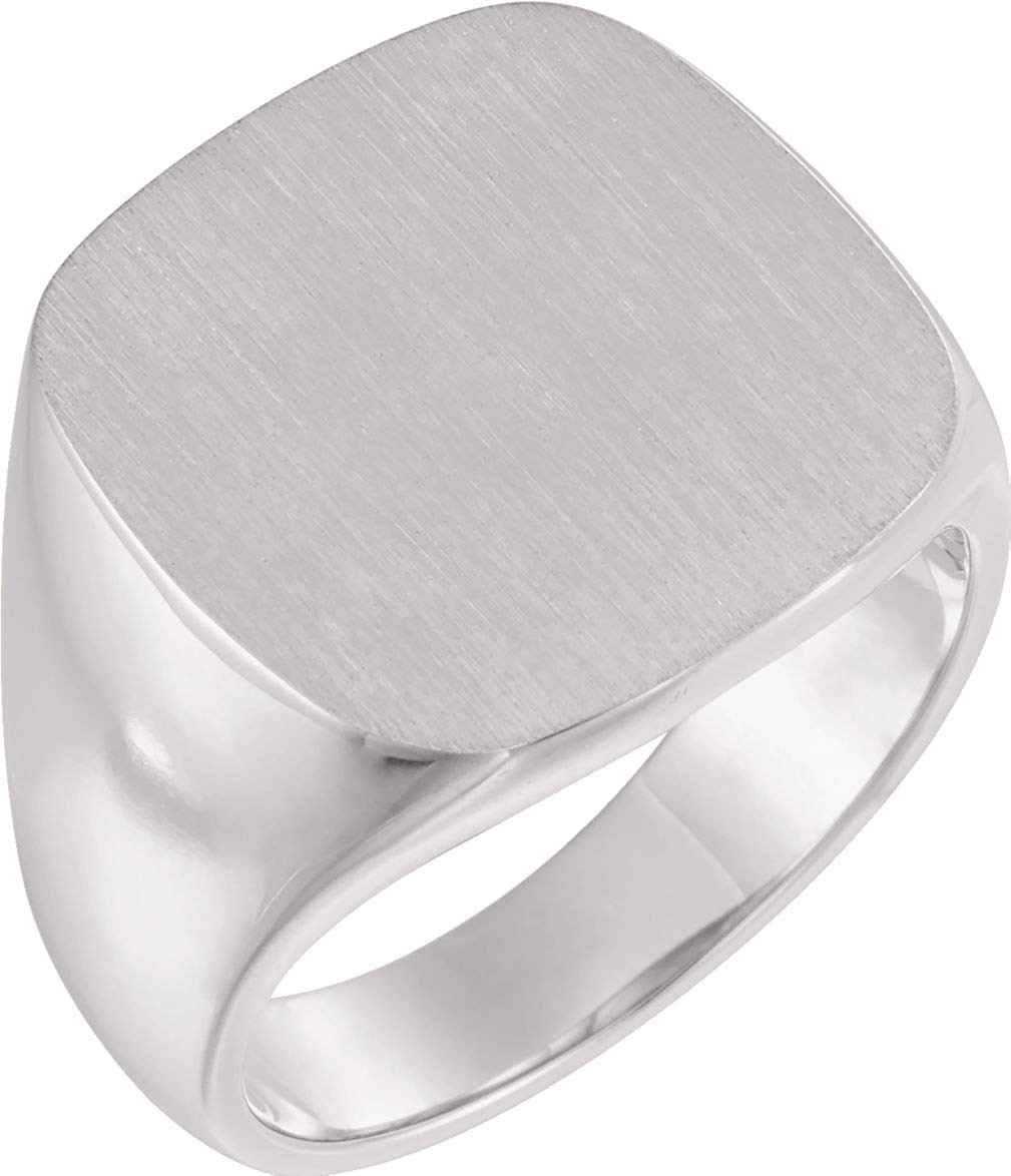 - Signet is a Satin Brushed, Closed-Back, Flat-Top Square-Shape; Shoulders and Base of Ring are Finished Crafted in Platinum