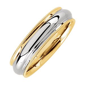 - 14k White and Yellow Gold Comfort Fit Milgrain Band is 6 Millimeters Wide or .24 Inches Wide