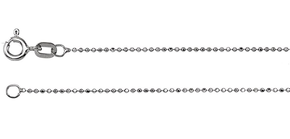 14k White Gold Rhodium-Plated 1.00mm Solid Diamond-Cut Bead Chain, 7"