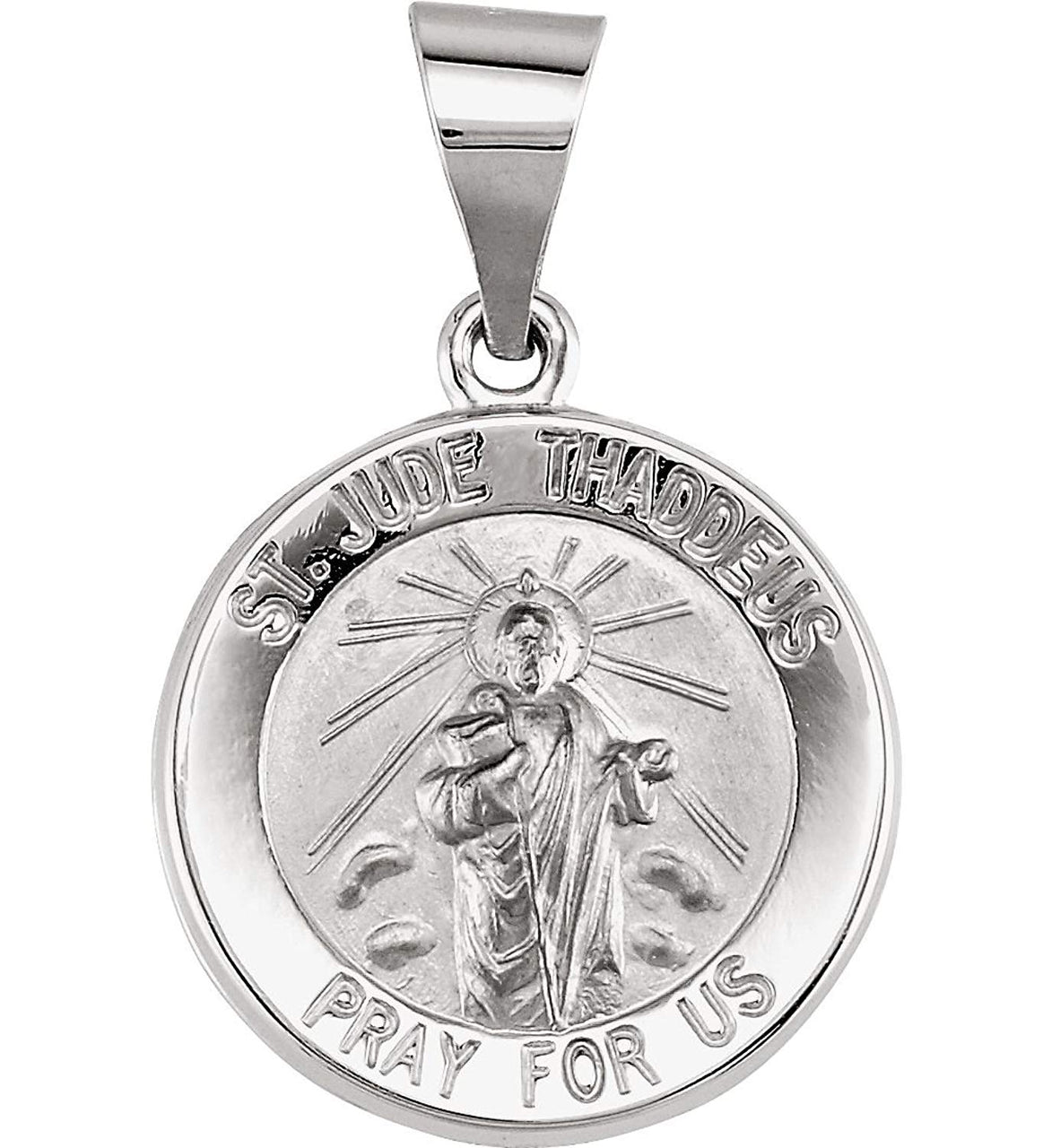- St. Jude Medal Measures .58 Inches in Diameter; Over 1/2 Inch; Smaller than a U.S. Dime is Crafted in 14k White Gold