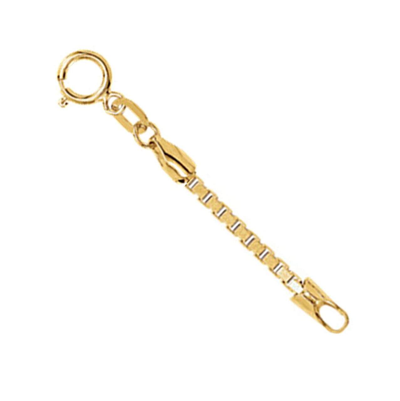 - Square Box Extender or Safety Chain with a Spring Ring Clasp is Hand-Crafted in Polished 14k Yellow Gold