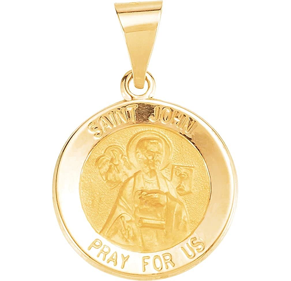 - 15.00 Millimeters St. John Medal Crafted in Polished 14k Yellow Gold