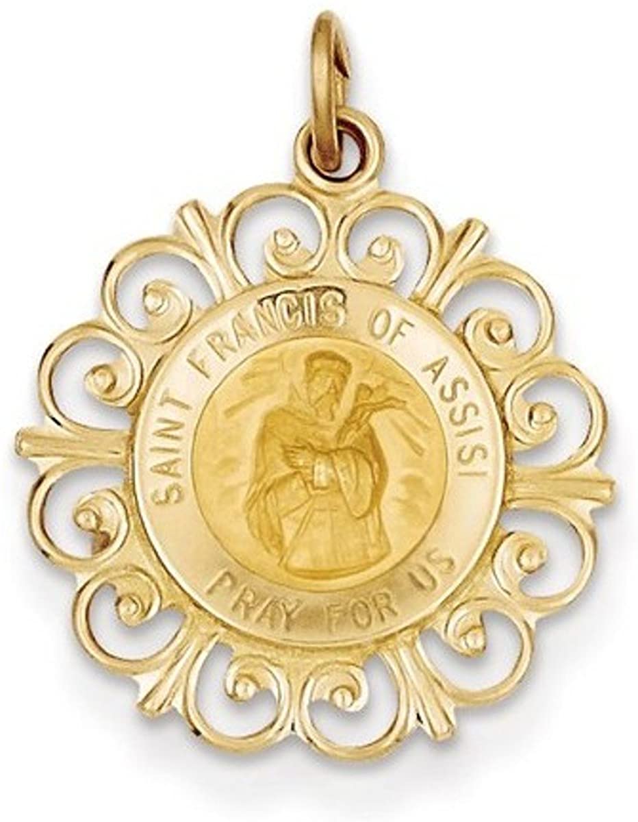 - Engraved Text 'Saint Francis of Assisi Pray For Us' Encircles the Outside of the Medal; Image Depicting Saint Francis of Assisi Receiving the Stigmata; Die Struck, Medal is Crafted in Polished and Satin 14k Yellow Gold