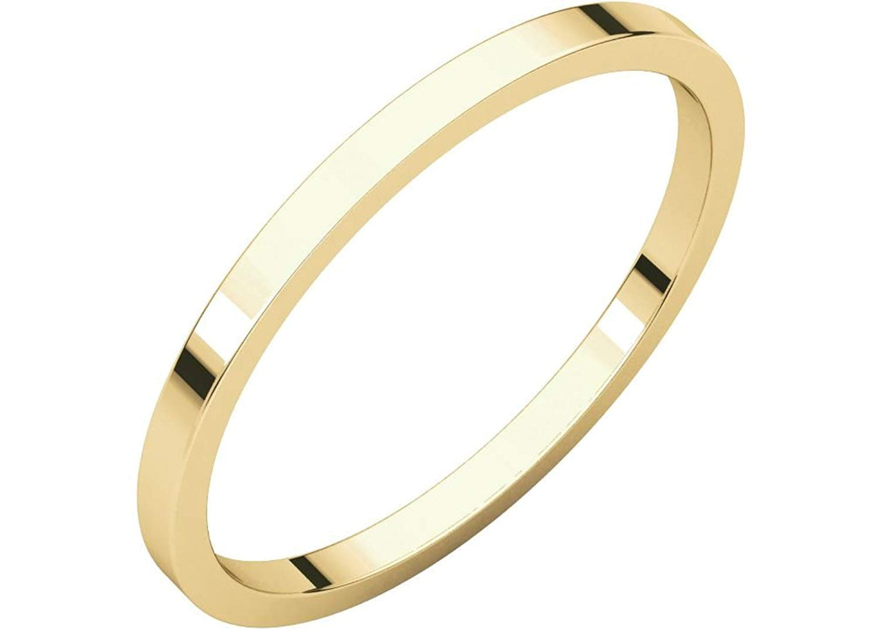 - Flat Edged, Flat-Profile, High Polished Band; This is Suitable as a Stacking Band or to be Worn Alone for those who Prefer Slim, Sleek Bands; Ring is Crafted in Polished 14k Yellow Gold