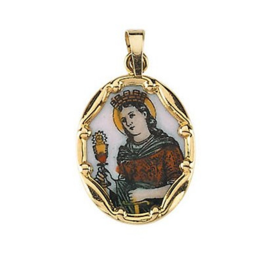 14k Yellow Gold St. Barbara Hand-Painted Porcelain Medal (13x10 MM)