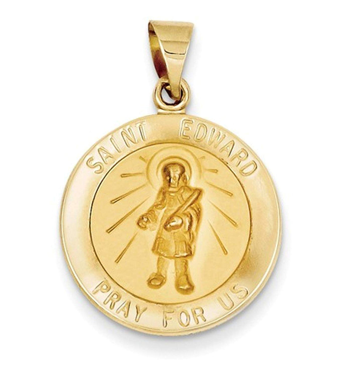 - Engraved Text 'Saint Edward Pray For Us' Encircles the Medal; Die Struck, Hollow Medal is Crafted in Polished and Satin 14k Yellow Gold