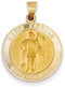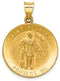 - Engraved Text Round 'Saint Florian Protect Us' Encircles the Medal; Die Struck, Hollow Medal is Crafted in Polished and Satin 14k Yellow Gold