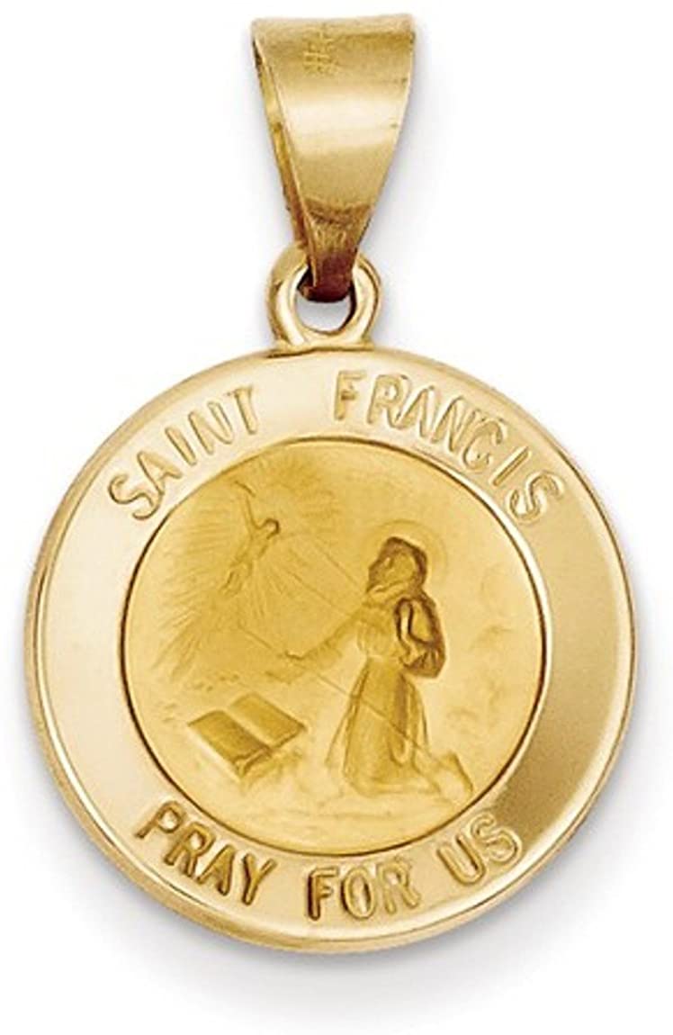 - Engraved Text 'Saint Francis Pray For Us' Encircles the Outside of the Medal; Image Depicting Saint Francis Receiving the Stigmata; Die Struck, Hollow Medal is Crafted in Polished and Satin 14k Yellow Gold
