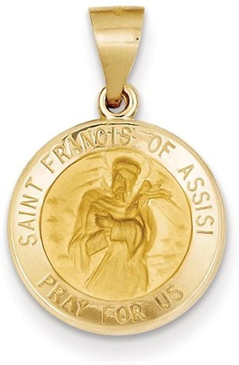 - Engraved Text 'Saint Francis of Assisi Pray For Us' Encircles the Outside of the Medal; Image Depicting Saint Francis of Assisi Receiving the Stigmata; Die Struck, Hollow Medal is Crafted in Polished and Satin 14k Yellow Gold
