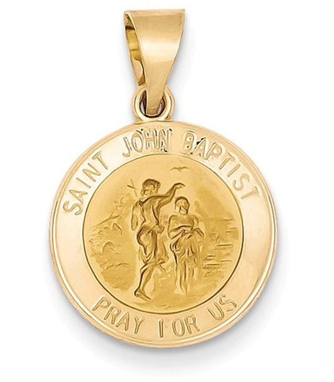- Engraved Text 'Saint John Baptist Pray For Us' Encircles the Outside of the Medal; Die Struck, Hollow Medal is Crafted in Polished and Satin 14k Yellow Gold