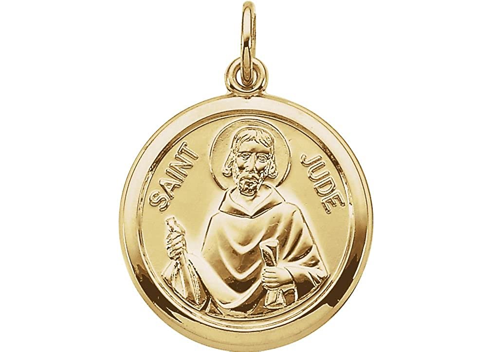 - 15.50 Millimeters Saint Jude Medal Crafted in Polished 14k Yellow Gold