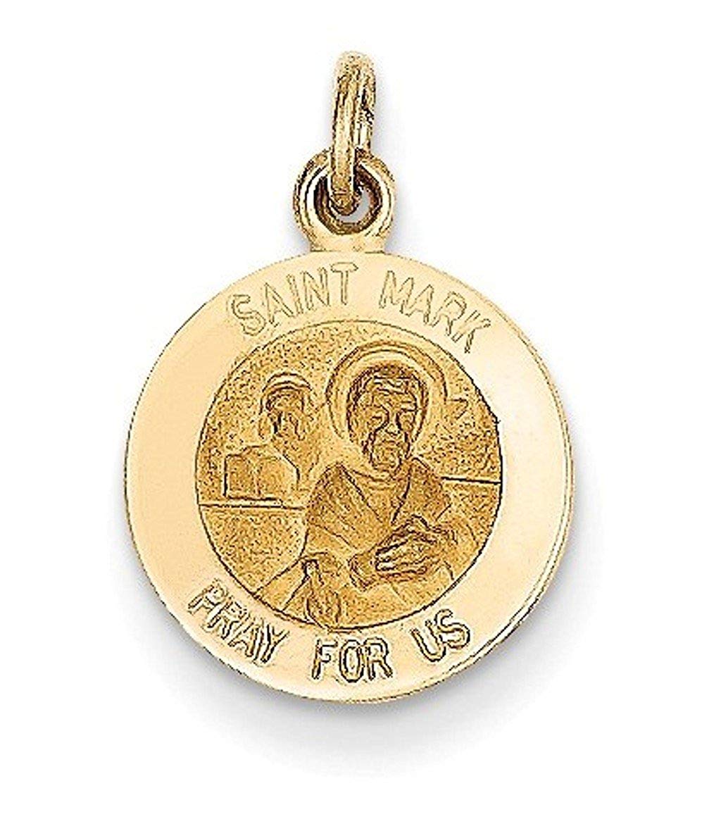 - Round Frames Border Engraved Text "Saint Mark Pray For Us" Encircle the Medal; Die Struck, Medal is Crafted in Polished and Satin 14k Yellow Gold