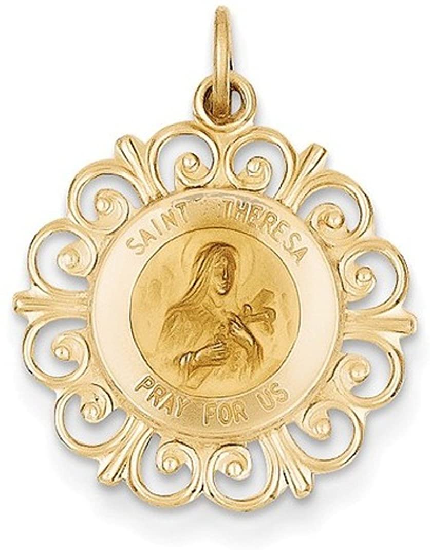 - Engraved Text 'St. Theresa Pray For Us' Encircle the Round Medal; Die Struck, Medal is Crafted in Polished and Satin 14k Yellow Gold