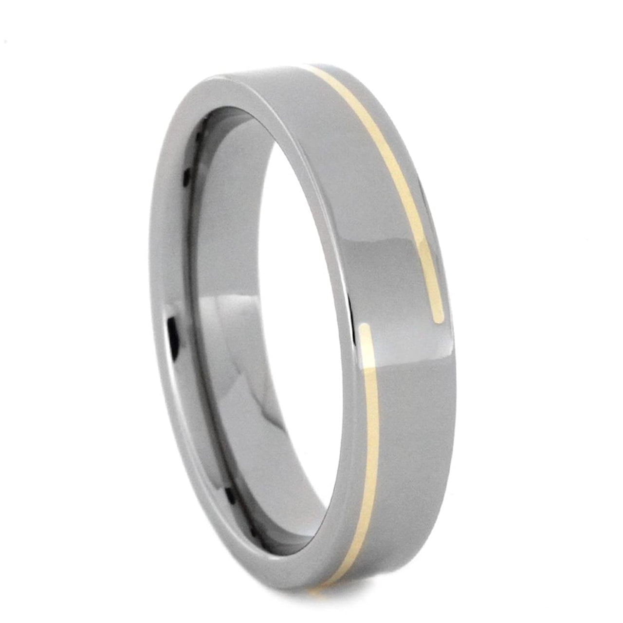 - Beautiful Wedding Band is Accented with 14k Yellow Gold Winding Inlay on a Hypoallergenic; Comfort-Fit Titanium; Flat Band