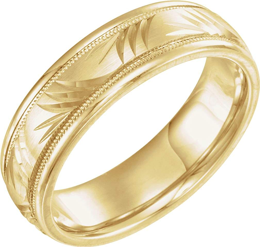 18k Yellow Gold Diamond-Cut Leaf Pattern 6mm Comfort-Fit Band, Size 6