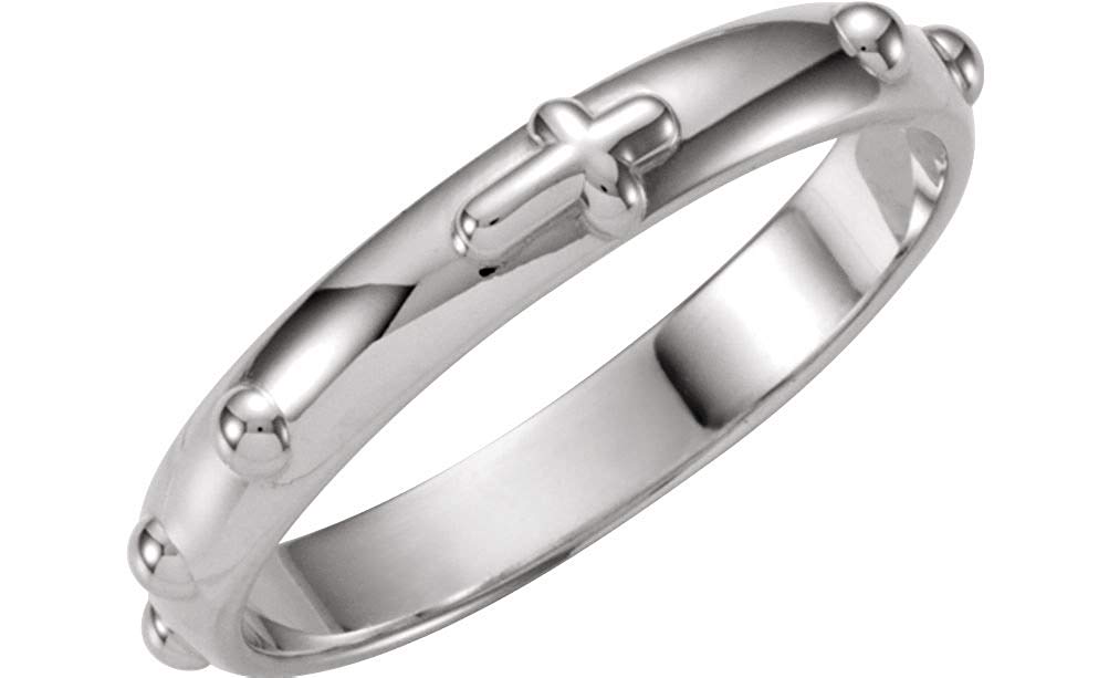 - Rosary Ring with Cross On-Center is Crafted in Polished Platinum