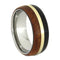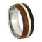 • Comfort-Fit, Polished Finished, Hypoallergenic Titanium Sleeve Encases by an African Blackwood and Amboyna Wood Overlay with a Pinstripe of 14k Yellow Gold On-Center; Both Woods Bands are Continuous with no Joints; Domed Profile Ring