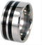 - Comfort-Fit, Titanium Sleeve Encircled by a Bright Polished, Hypoallergenic Double African Blackwood Pinstripes Inlay; Flat Profile Band