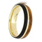• Comfort-Fit, Polished Finished, 14k Yellow Gold Sleeve Surrounded by an African Blackwood and Amboyna Burl Wood Overlay with a Pinstripe of 14k Yellow Gold On-Center; Both Woods Bands are Continuous with no Joints; Domed Profile Band