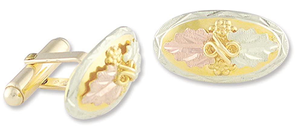 Antiqued Oval Cufflinks, 10k Yellow Gold, 12k Green and Rose Gold Black Hills Gold Motif